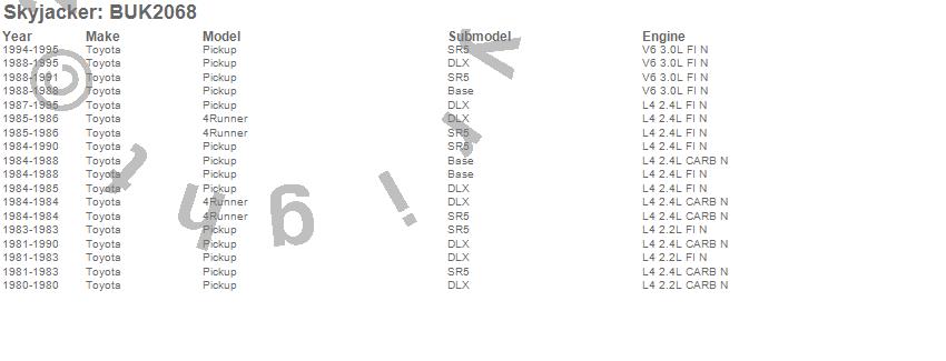 Below is an abbreviated list of applications for the Block And U-Bolt Kit.4Runner, Pickup, Toyota, 1995, 1994, 1993, 1992, 1991, 1990, 1989, 1988, 1987, 1986, 1985, 1984, 1983, 1982, 1981, 1980