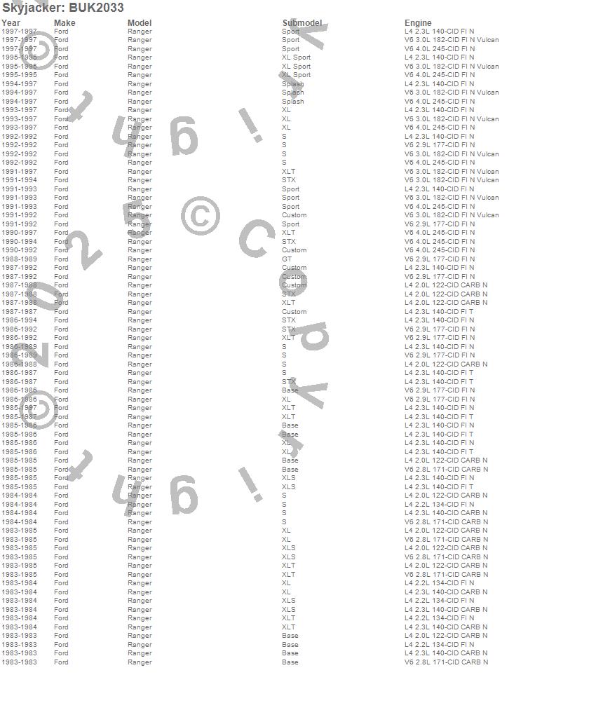 Below is an abbreviated list of applications for the Block And U-Bolt Kit.Ranger, Ford, 1997, 1996, 1995, 1994, 1993, 1992, 1991, 1990, 1989, 1988, 1987, 1986, 1985, 1984, 1983