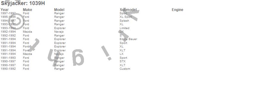 Brand: SkyjackerPart Number: 1039HAlignment Caster/Camber Kit Type: 0 - 2 Deg.UPC: 803696100302