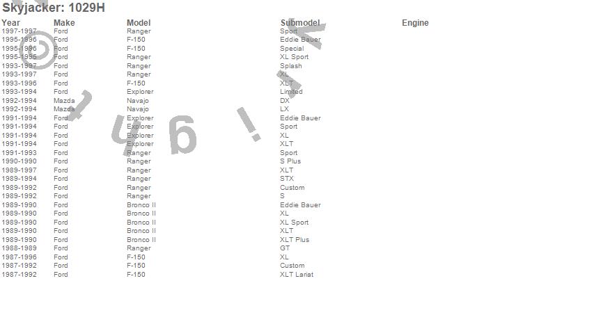 Brand: SkyjackerPart Number: 1029HAlignment Caster/Camber Kit Type: 0 - 2 Deg.UPC: 803696100265