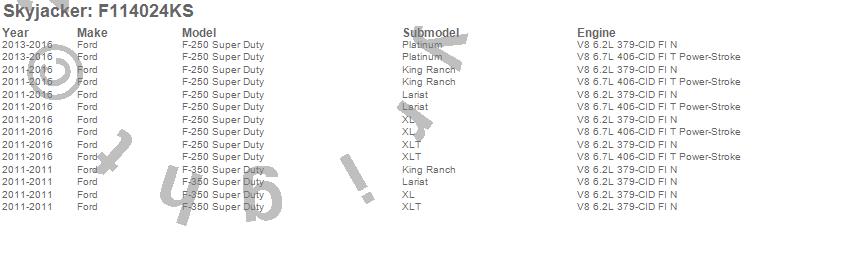 Brand: SkyjackerPart Number: F114024KSLift Kit; Rear Type: 4 in. Lift SystemUPC: 803696205953