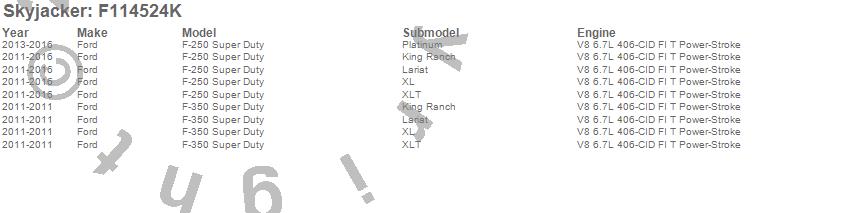 Below is an abbreviated list of applications for the Class 2 Suspension Lift Kit.F-250 Super Duty Pickup, F-350 Super Duty Pickup, Ford, 2012, 2011