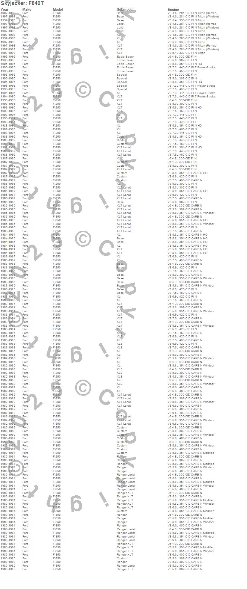 Below is an abbreviated list of applications for the Component Box For PN[F840TK].F-250 Pickup, F-350 Pickup, Ford, 1998, 1997, 1996, 1995, 1994, 1993, 1992, 1991, 1990, 1989, 1988, 1987, 1986, 1985, 1984, 1983, 1982