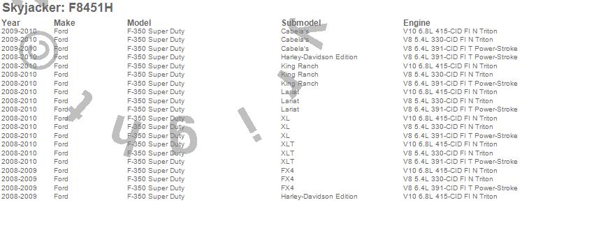 Brand: SkyjackerPart Number: F8451HLift Kit-Suspension Component Type: 4 in. Lift - Incl Rear BlocksUPC: 803696192611
