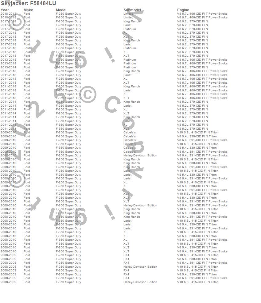 Brand: SkyjackerPart Number: F58484LULift Kit-Suspension Component Type: 8 in. LiftUPC: 803696195155