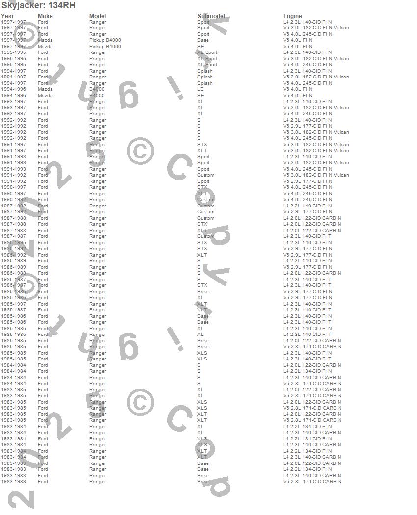 Below is an abbreviated list of applications for the Component Box For PN[134RHK].B4000, Ranger, Ford, Mazda, 1997, 1996, 1995, 1994, 1993, 1992, 1991, 1990, 1989, 1988, 1987, 1986, 1985, 1984, 1983