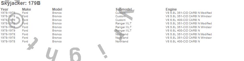 Below is an abbreviated list of applications for the Component Box For PN[179BK].Bronco, Ford, 1979, 1978