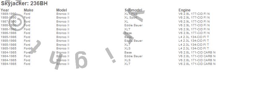 Below is an abbreviated list of applications for the Component Box For PN[236BHK-A].Bronco II, Ford, 1990, 1989, 1988, 1987, 1986, 1985, 1984
