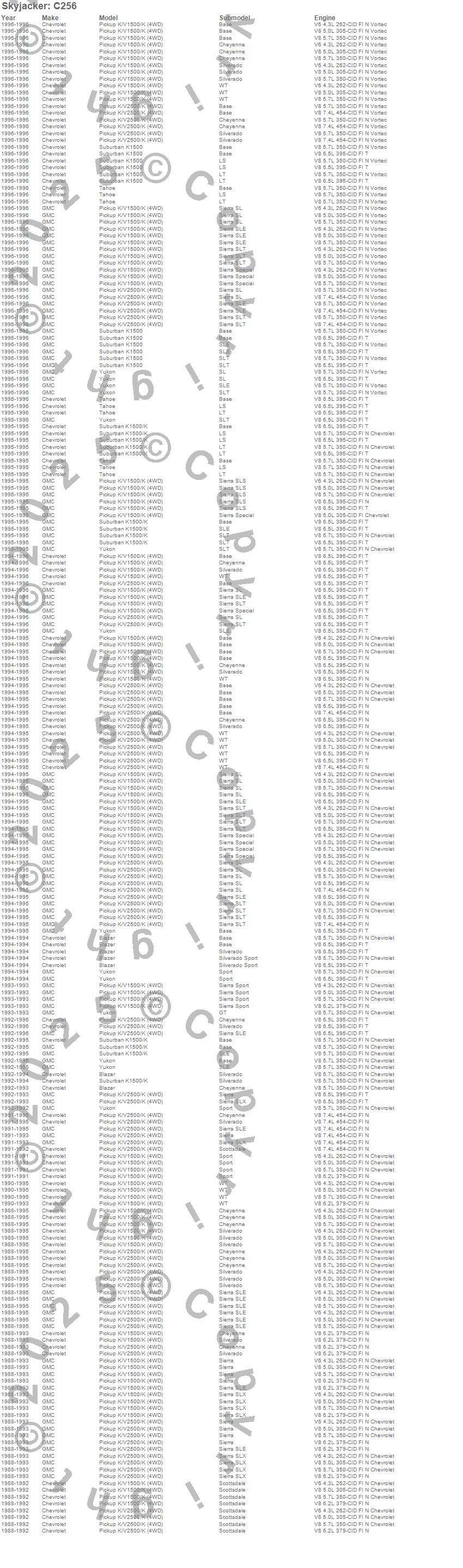 Below is an abbreviated list of applications for the Component Box For PN[C256K].Blazer, K1500 Pickup, K1500 Suburban, K2500 Pickup, Tahoe, Yukon, Chevrolet, GMC, 1996, 1995, 1994, 1993, 1992, 1991, 1990, 1989, 1988