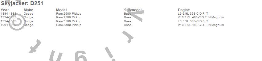 Brand: SkyjackerPart Number: D251Lift Kit-Suspension Component Type: 2-2.5 in. Lift - Incl. Rear Add-A-Leafs - Lower Link - Bump StopsUPC: 803696122366