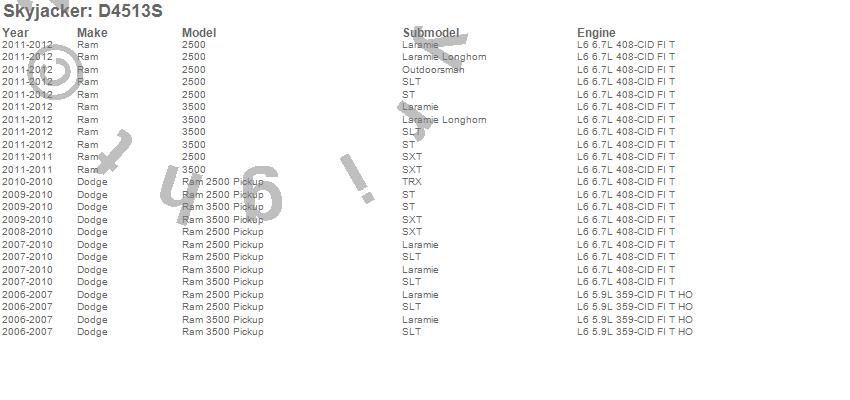 Brand: SkyjackerPart Number: D4513SLift Kit-Suspension Component Type: 5 in. LiftUPC: 803696178844
