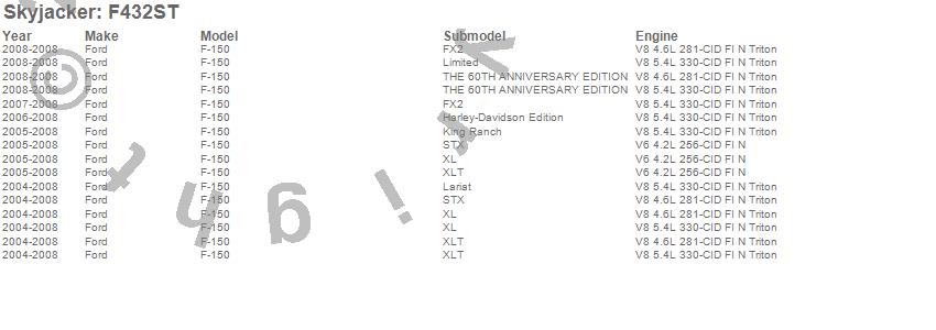 Brand: SkyjackerPart Number: F432STLift Kit-Suspension Component Type: 3 in. Lift HeightUPC: 803696193151