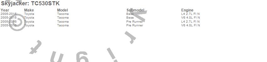 Brand: SkyjackerPart Number: TC530STKLift Kit; Rear Type: 3 in. Lift - Incl. Main Component Box - Rear Add-A-LeafUPC: 803696189314
