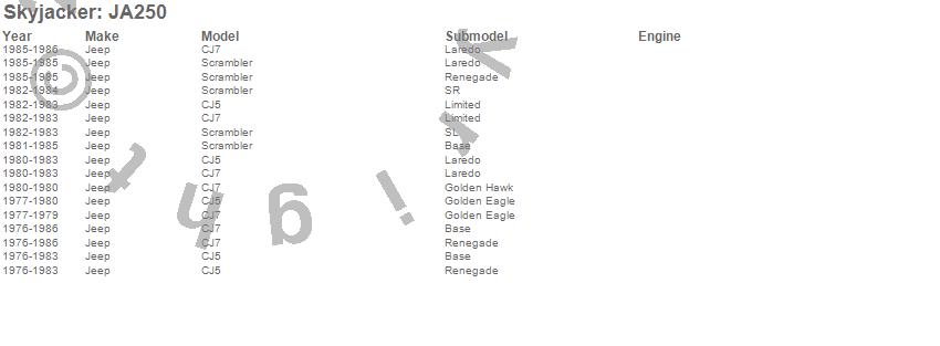 Brand: SkyjackerPart Number: JA250Pitman Arm Type: For Lift Height 3.5 in. - 4 in.UPC: 803696144276