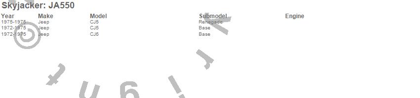 Brand: SkyjackerPart Number: JA550Pitman Arm Type: For Lift Height 3 in. - 4 in.UPC: 803696144306