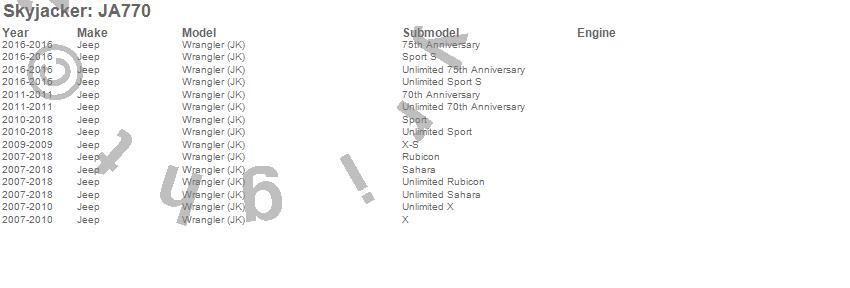 Brand: SkyjackerPart Number: JA770Pitman Arm Type: For Lift Height 4 in. - 6 in.UPC: 803696190976