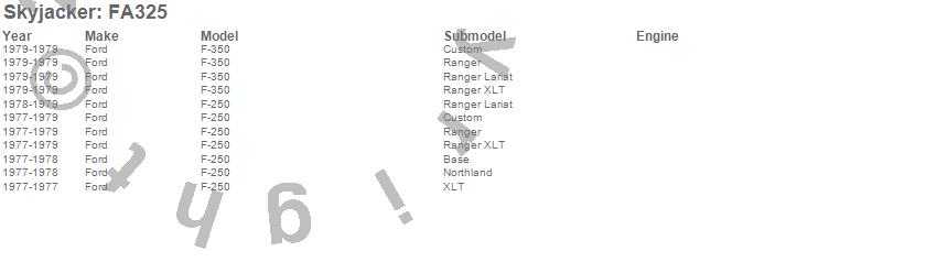 Brand: SkyjackerPart Number: FA325Pitman Arm Type: For Lift Height 2 in. - 3 in.UPC: 803696130460