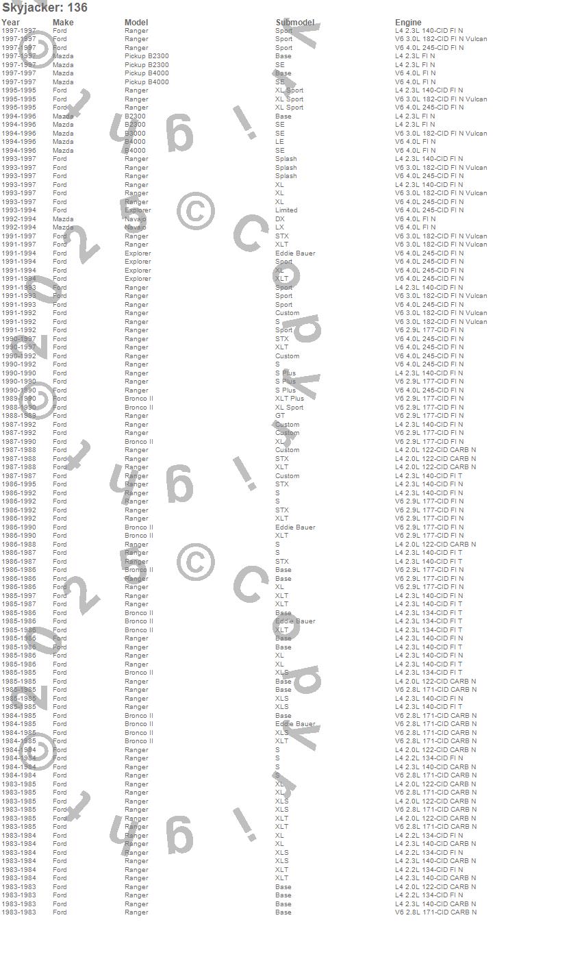 Below is an abbreviated list of applications for the Softride Coil Spring.B2300, B3000, B4000, Bronco II, Explorer, Navajo, Ranger, Ford, Mazda, 1997, 1996, 1995, 1994, 1993, 1992, 1991, 1990, 1989, 1988, 1987
