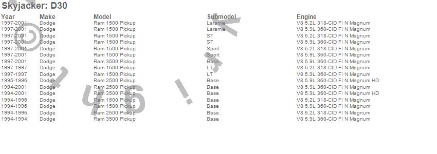 Brand: SkyjackerPart Number: D30Coil Spring Set Type: Set Of 2 - w/2.5 in. Wide Rear Springs - Front w/3 in. Lift - BlackUPC: 803696123394