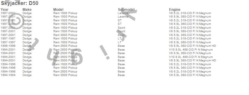 Brand: SkyjackerPart Number: D50Coil Spring Set Type: Set Of 2 - w/2.5 in. Wide Rear Springs - Front w/5 in. Lift - BlackUPC: 803696125695