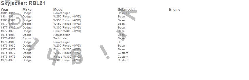 Below is an abbreviated list of applications for the Stainless Steel Brake Line Rear.Ramcharger, Trailduster, W100 Pickup, W150 Pickup, W200 Pickup, W250 Pickup, W300 Pickup, W350 Pickup, Dodge, Plymouth, 1981, 1980, 1979, 1978, 1977, 1976