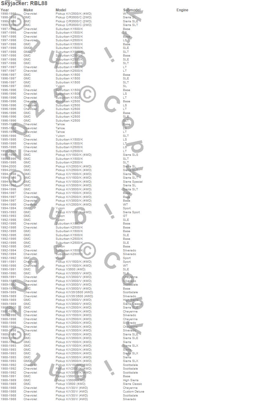 Below is an abbreviated list of applications for the Stainless Steel Brake Line Rear.C3500 Pickup, K1500 Pickup, K1500 Suburban, K2500 Pickup, K2500 Suburban, K3500 Pickup, Tahoe, V30 Pickup, V3500 Pickup, Yukon, Chevrolet, GMC, 2000, 1999, 1998, 1997, 1996, 1995, 1994, 1993