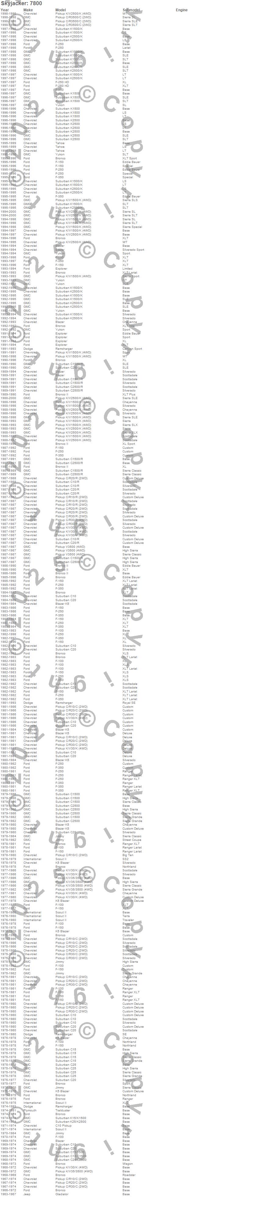 Below is an abbreviated list of applications for the Steering Stabilizer.Blazer, Blazer K5, Bronco, Bronco II, C10 Pickup, C10 Suburban, C15 Suburban, C15/C1500 Suburban, C1500 Suburban, C20 Pickup, C20 Suburban, C25 Suburban, C25/C2500 Suburban, C2500 Suburban, C30 Pickup, C3500 Pickup, Explorer, F-100 Pickup, F-150 Pickup, F-250 Pickup