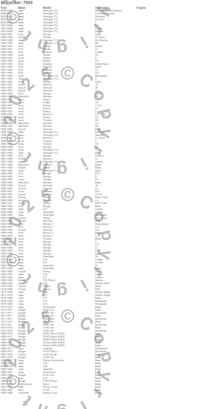 Below is an abbreviated list of applications for the Steering Stabilizer.4Runner, 720 Pickup, A100, A108 Van, Amigo, B100 Van, B200 Van, B300 Van, Bronco II, CJ-3B, CJ5, CJ6, CJ7, Commando, D100 Pickup, D200 Pickup, D300 Pickup, Explorer, F-100 Pickup, Jeepster