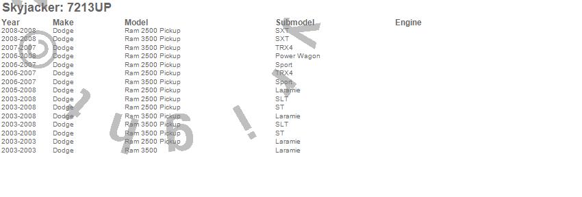 Brand: SkyjackerPart Number: 7213UPSteering Damper Kit Type: Update Kit - Incl. Main Brkt - Pr. U-Bolts - Nuts - For Use w/PN[7213] - For Use w/Heavy Duty OEM Drag Link OnlyUPC: 803696200446