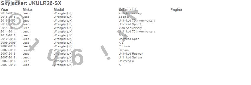 Brand: SkyjackerPart Number: JKULR26-SXSuspension Link Arm Kit Type: 2-6 in. Lift - PairUPC: 803696194233