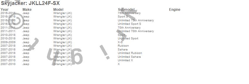 Brand: SkyjackerPart Number: JKLL24F-SXSuspension Link Arm Kit Type: 2-5 in. Lift - PairUPC: 803696194257
