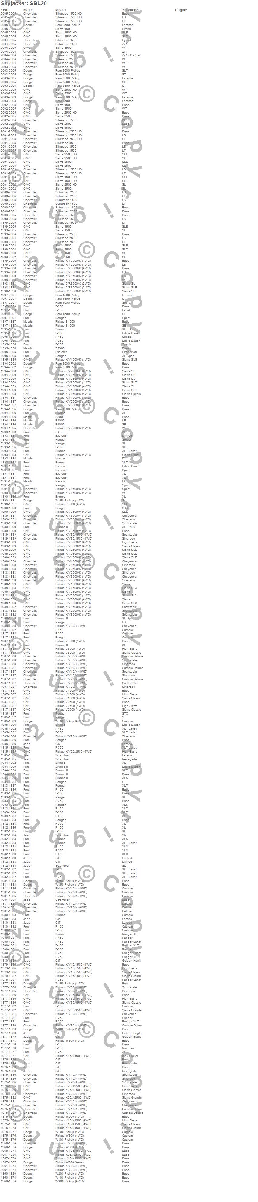 Brand: SkyjackerPart Number: SBL20Sway Bar Drop Bracket Type: Front - Lift Height 3 in. - 6 in.UPC: 803696158174
