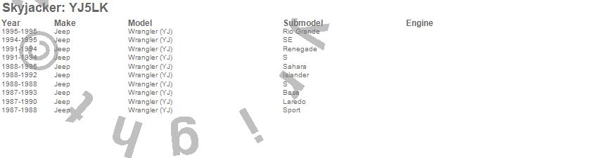 Below is an abbreviated list of applications for the Track Bar Assembly.Wrangler (YJ), Jeep, 1995, 1994, 1993, 1992, 1991, 1990, 1989, 1988, 1987