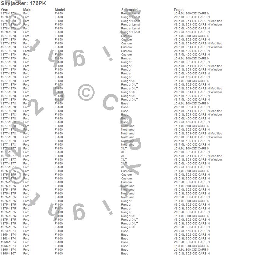 Below is an abbreviated list of applications for the Suspension Lift Kit.F-100 Pickup, F-150 Pickup, Ford, 1979, 1978, 1977, 1975, 1974, 1973, 1972, 1971, 1970, 1969, 1968, 1967, 1966