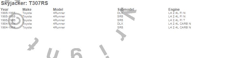 Brand: SkyjackerPart Number: T307RSLift Kit-Suspension Component Type: 7 in. Lift - Incl. Rr UBolt Kit - Rear Block - Track Bar Brkt - Spring Bushing KitUPC: 803696162171