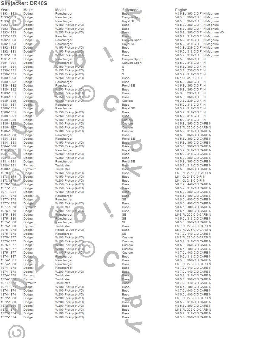 Below is an abbreviated list of applications for the Softride Leaf Spring.Ramcharger, Trailduster, W100 Pickup, W150 Pickup, W200 Pickup, W250 Pickup, Dodge, Plymouth, 1993, 1992, 1991, 1990, 1989, 1988, 1987, 1986, 1985, 1984, 1983, 1982