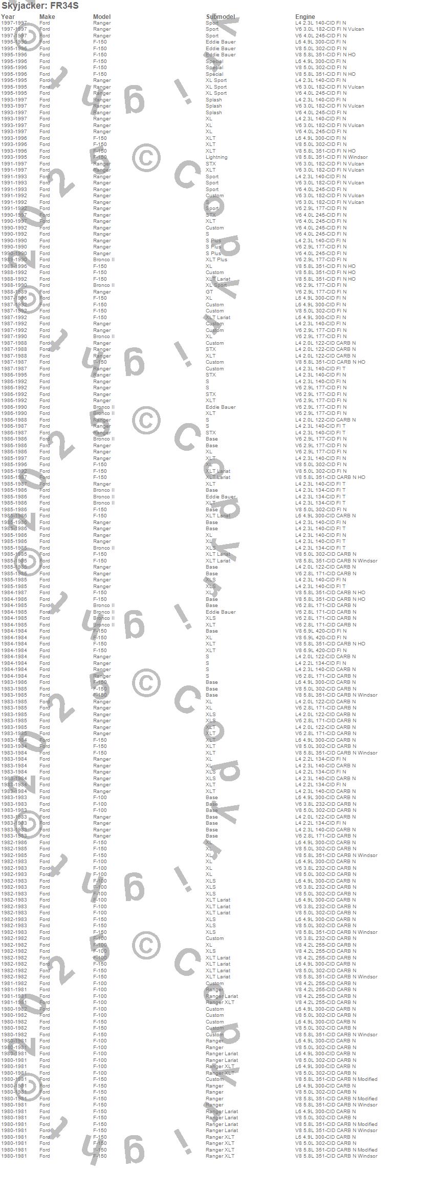 Below is an abbreviated list of applications for the Softride Leaf Spring.Bronco II, F-100 Pickup, F-150 Lightning Pickup, F-150 Pickup, Ranger, Ford, 1997, 1996, 1995, 1994, 1993, 1992, 1991, 1990, 1989, 1988, 1987, 1986, 1985, 1984