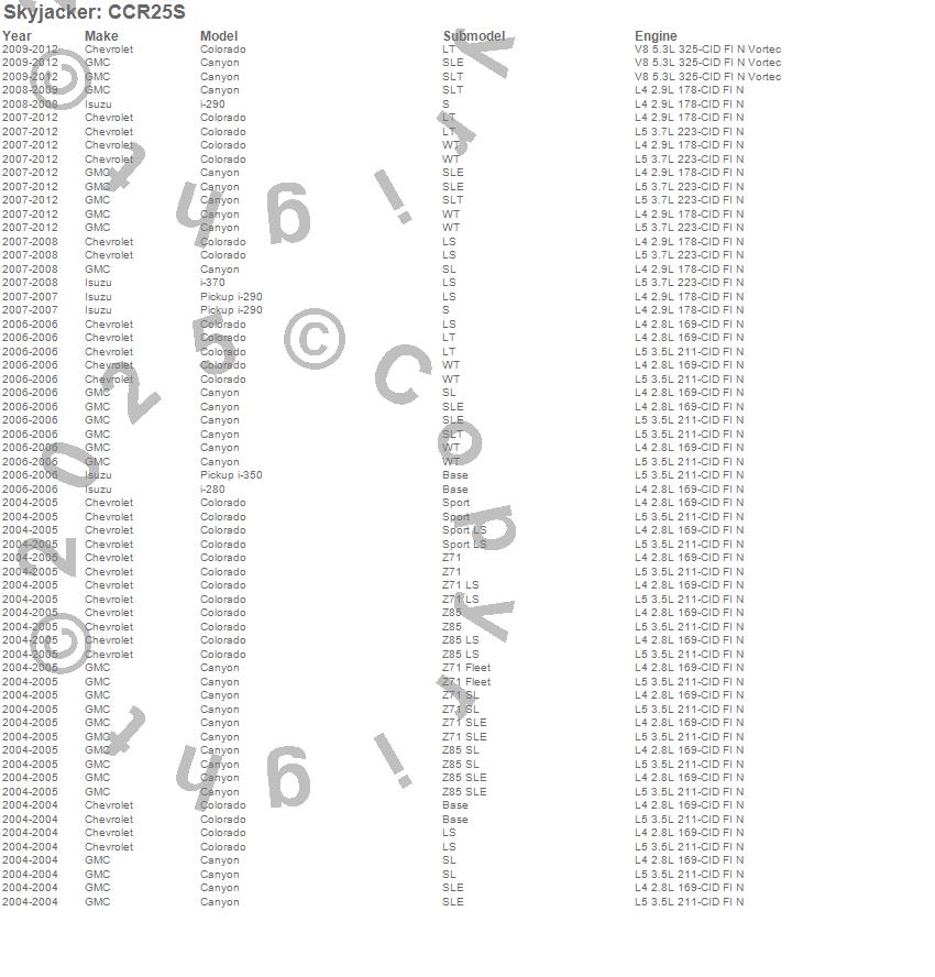 Below is an abbreviated list of applications for the Softride Leaf Spring.Canyon, Colorado, i-280, i-290, i-350, i-370, Chevrolet, GMC, Isuzu, 2012, 2011, 2010, 2009, 2008, 2007, 2006, 2005, 2004