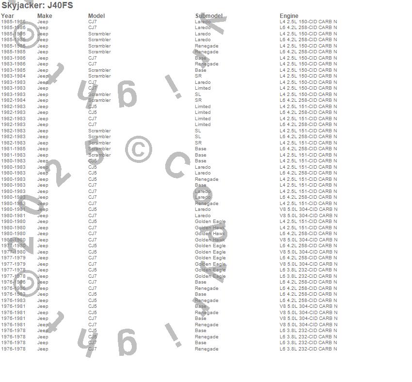 Below is an abbreviated list of applications for the Softride Leaf Spring.CJ5, CJ7, Scrambler, Jeep, 1986, 1985, 1984, 1983, 1982, 1981, 1980, 1979, 1978, 1977, 1976