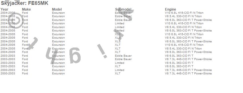 Below is an abbreviated list of applications for the Suspension Lift Kit.Excursion, Ford, 2003, 2002, 2001, 2000