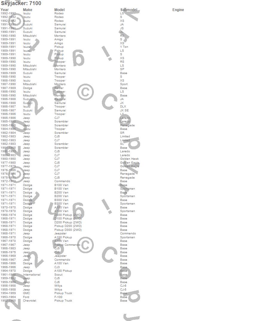 Below is an abbreviated list of applications for the Steering Stabilizer Single Kit.A100, A108 Van, Amigo, B100 Van, B200 Van, B300 Van, CJ-3B, CJ5, CJ6, CJ7, Commando, D100 Pickup, D200 Pickup, D300 Pickup, F-100 Pickup, Jeepster, Montero, Pickup, Raider, Rodeo