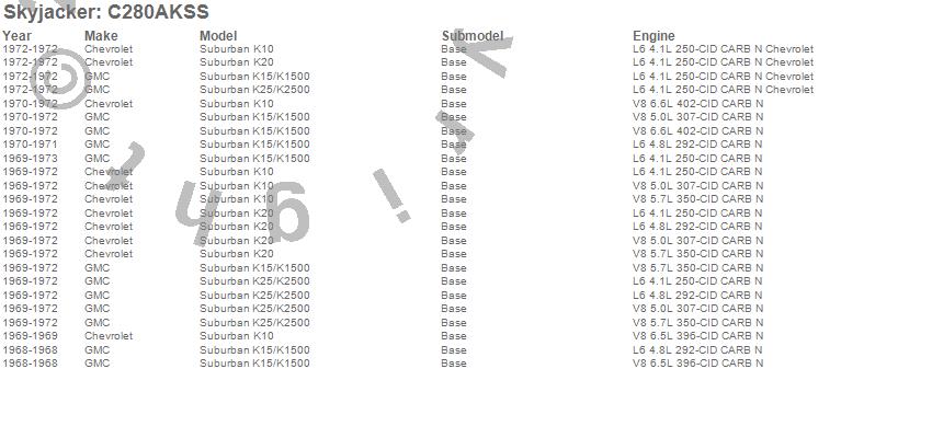 Below is an abbreviated list of applications for the Suspension Lift Kit.K10 Suburban, K15/K1500 Suburban, K20 Suburban, K25/K2500 Suburban, Chevrolet, GMC, 1972, 1971, 1970, 1969, 1968