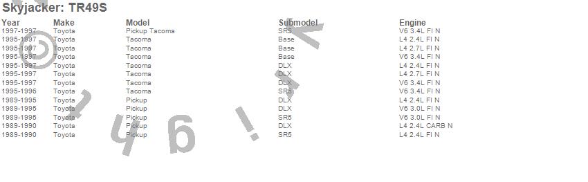 Below is an abbreviated list of applications for the Softride Leaf Spring.Pickup, Tacoma, Toyota, 1997, 1996, 1995, 1994, 1993, 1992, 1991, 1990, 1989