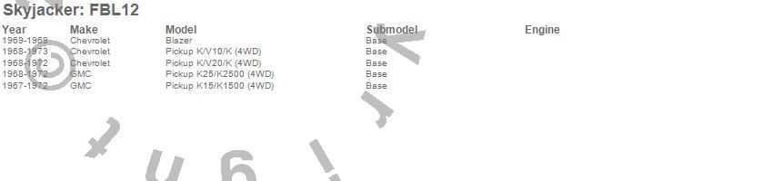 Brand: SkyjackerPart Number: FBL12Brake Hose Type: Lift Height 3 in. - 4 in. - PairUPC: 803696130521