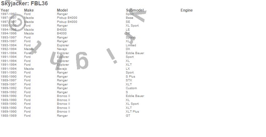 Brand: SkyjackerPart Number: FBL36Brake Hose Type: Lift Height 4 in. - 6 in. - PairUPC: 803696130897