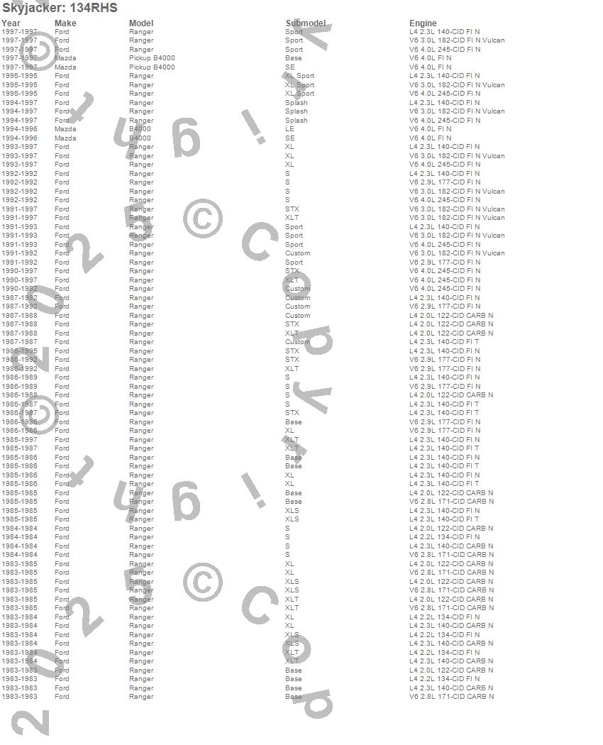 Below is an abbreviated list of applications for the Component Box For PN[134RHKS].B4000, Ranger, Ford, Mazda, 1997, 1996, 1995, 1994, 1993, 1992, 1991, 1990, 1989, 1988, 1987, 1986, 1985, 1984, 1983