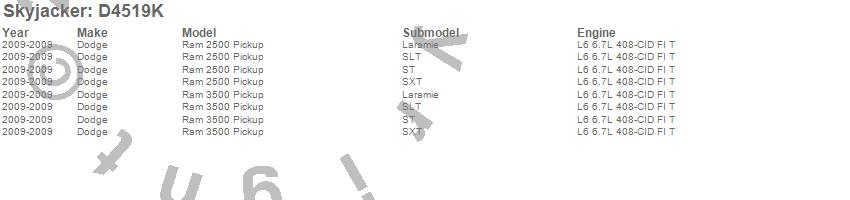 Below is an abbreviated list of applications for the Suspension Lift Kit.Ram 2500 Pickup, Ram 3500 Pickup, Dodge, 2009, 2008, 2007, 2006