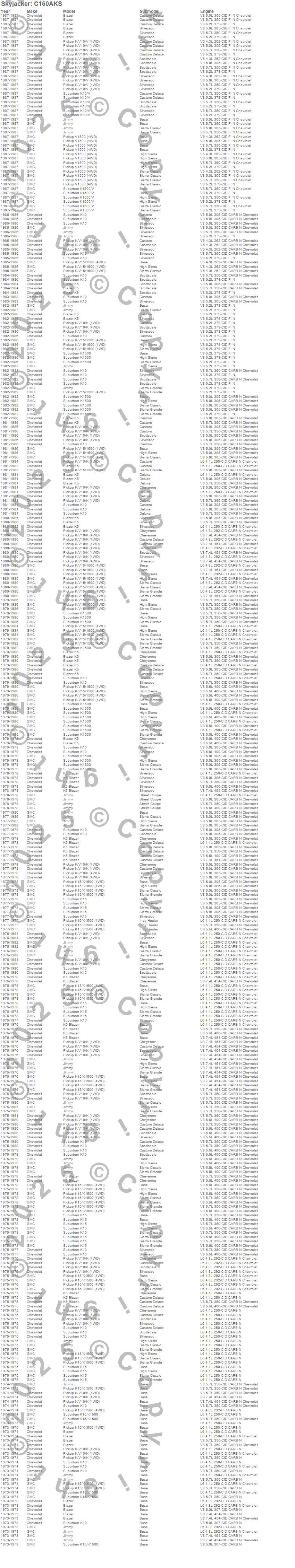 Brand: SkyjackerPart Number: C160AKSLift Kit; Rear Type: 6 in. Lift - Incl. Front/Rear Leaf Springs - Front/Rear UBolt Kits - Bushing Kit - Brake Line BracketsUPC: 803696118161