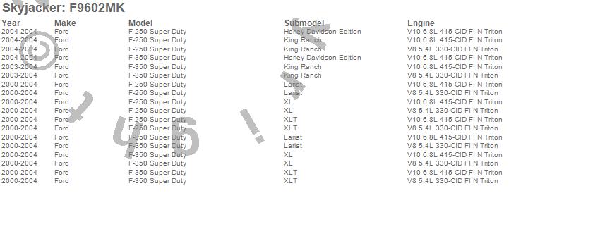 Below is an abbreviated list of applications for the Suspension Lift Kit.F-250 Super Duty Pickup, F-350 Super Duty Pickup, Ford, 2004, 2003, 2002, 2001, 2000