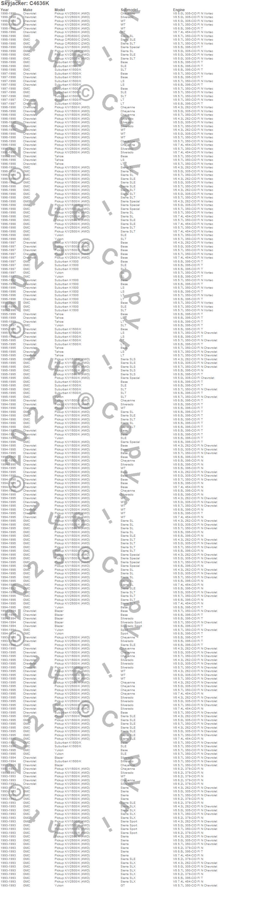 Below is an abbreviated list of applications for the Suspension Lift Kit.Blazer, C3500 Pickup, K1500 Pickup, K1500 Suburban, K2500 Pickup, Tahoe, Yukon, Chevrolet, GMC, 1999, 1998, 1997, 1996, 1995, 1994, 1993